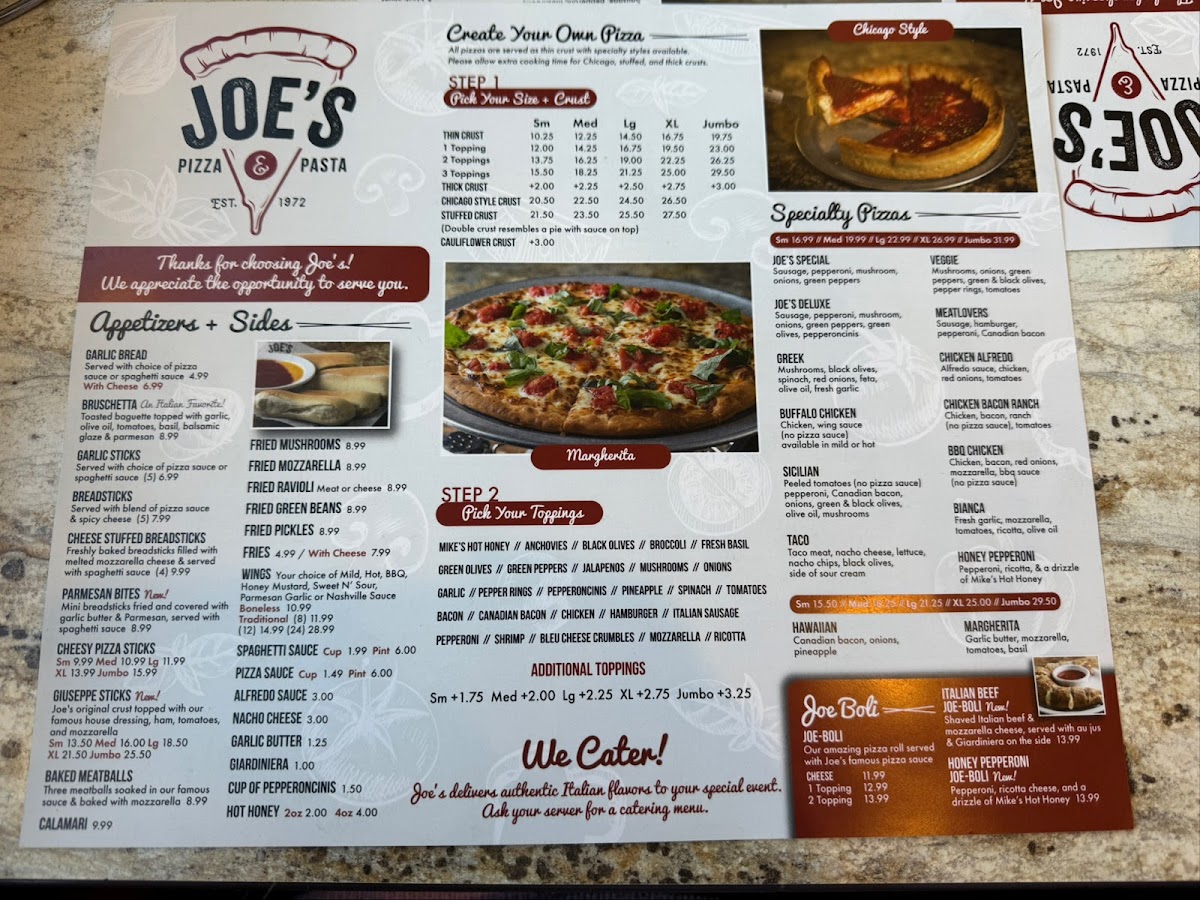 With friendly service and a cozy atmosphere, Joe's Pizza & Pasta is the perfect stop for a flavorful meal in Mt Vernon!